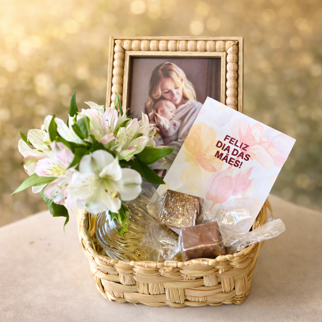 Delicada, afetiva e cheia de significado, essa cesta é perfeita para emocionar no Dia das Mães. Uma combinação encantadora de flores naturais, lembrança personalizada e doces especiais para tornar o momento ainda mais inesquecível.