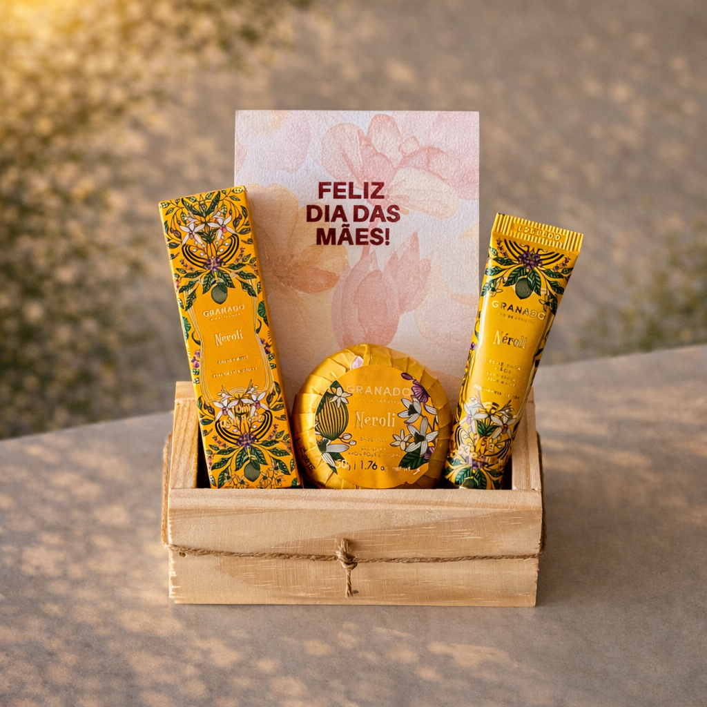O kit Mini Neroli Jardim Tropical da Granado envolve com notas leves e sofisticadas, transformando o cuidado do dia a dia em um momento especial.